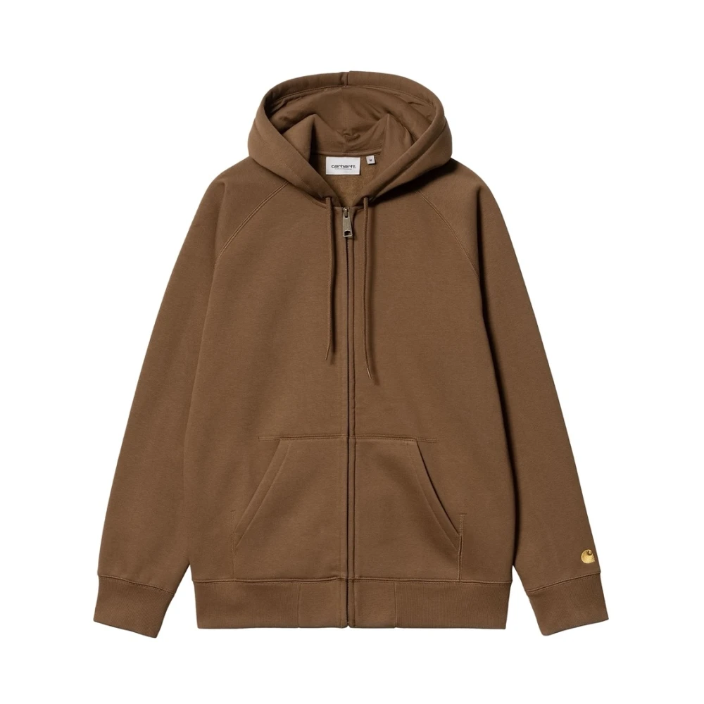 zwart/goudkleurig katoenblend jersey textuur geborduurd logo op de mouw logorits capuchon met trekkoordsluiting ritssluiting aan de voorkant lange raglanmouwen geribbelde manchetten en zoom twee zakken aan de voorzijde rechte zoom fleece voering