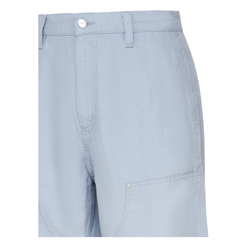 Upgrade je garderobe met deze Carhartt Wip wijde broek voor heren. Met een relaxte taps toelopende pasvorm met normale taille, driedubbele stiksels, versterkte knien, klep met rits en een vierkant label. Gemaakt van lichtblauw linnen en katoen voor een stijlvolle en comfortabele uitstraling.