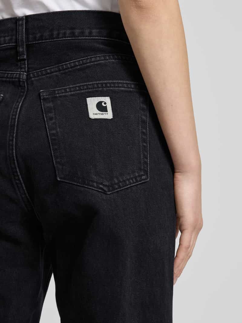 Loose fit damesjeans van Carhartt Work In Progress. Puur katoen. Uitlopend model. Model 'NOXEN'. 5-pocketdesign. Knoop- en ritssluiting. Bandwijdte bij maat 27: 35 cm. Binnenbeenlengte bij maat 27: 82 cm