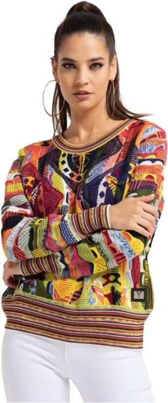 Ontdek de prachtige schoonheid van Carlo Colucci Women's Round-neck Knitwear Ciolari Sweater. Dit prachtige stuk toont levendige kleuren die eerder op een kunstwerk lijken dan op een trui. Het ingewikkelde breiproces geeft het een exclusief en extravagant uiterlijk. De geribbelde afwerkingen en contrasterende kleuren op de ronde hals voegen mooie structuur en diepte toe, die de onregelmatige garencompositie complementeren. Vervaardigd uit een mix van 55% Polyacryl, 40% Nieuwe Wol en 5% Polyamide, is deze trui een waar meesterwerk