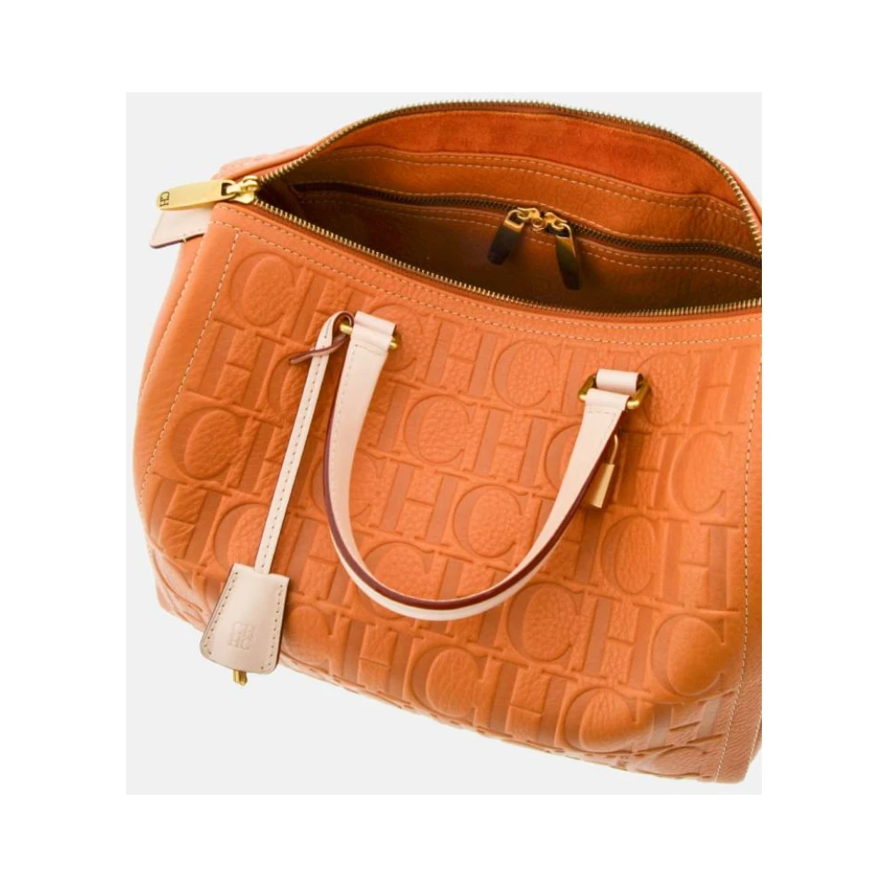 Carolina Herrera Vergrendelde Amber Leren Handtas Orange Dames