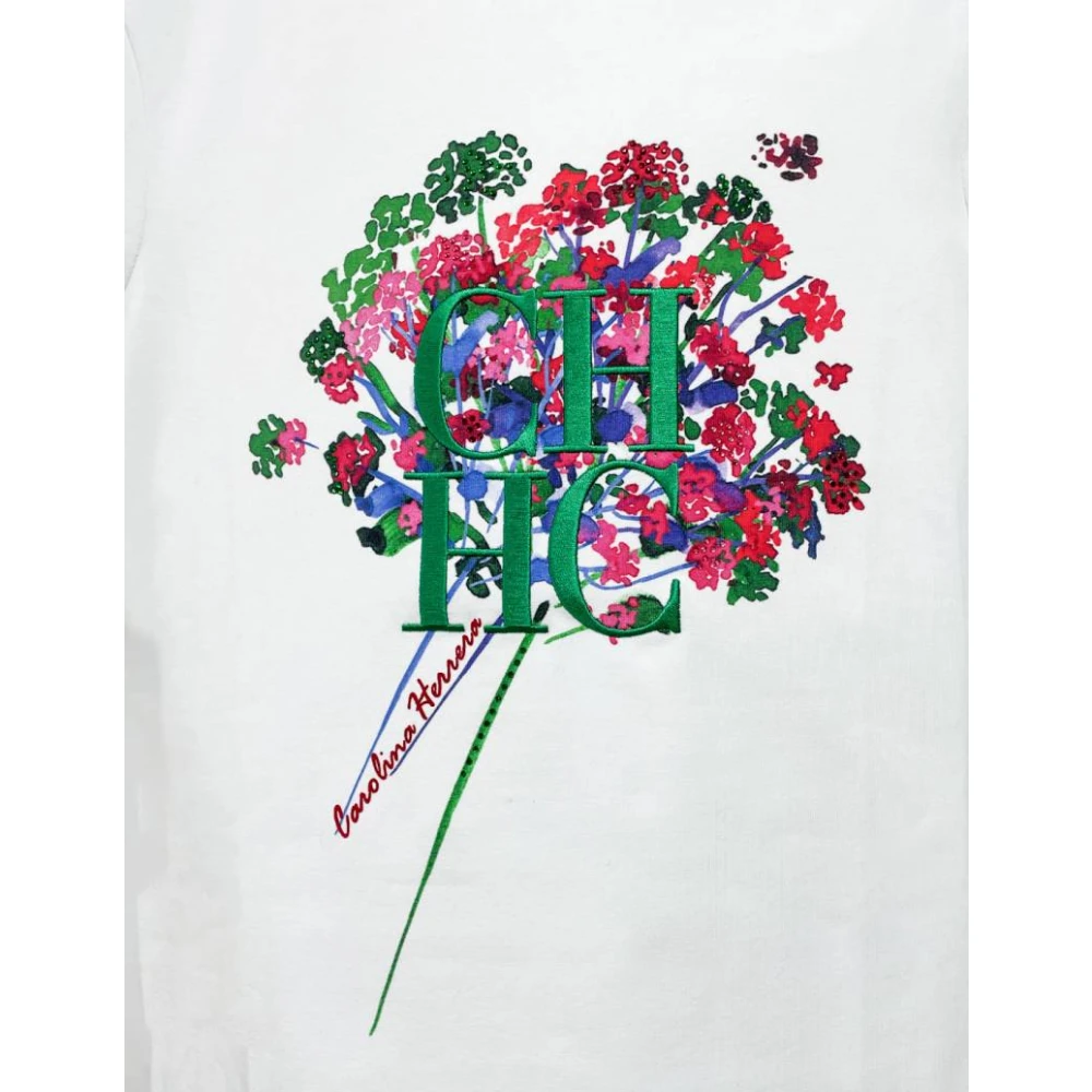 Aansluitend T-shirt van stretchkatoen met geborduurde Carolina-initialen in contrast met bloemendetail. Ronde hals en korte mouwen. 100% origineel en nieuw product. Gratis verzending wereldwijd.