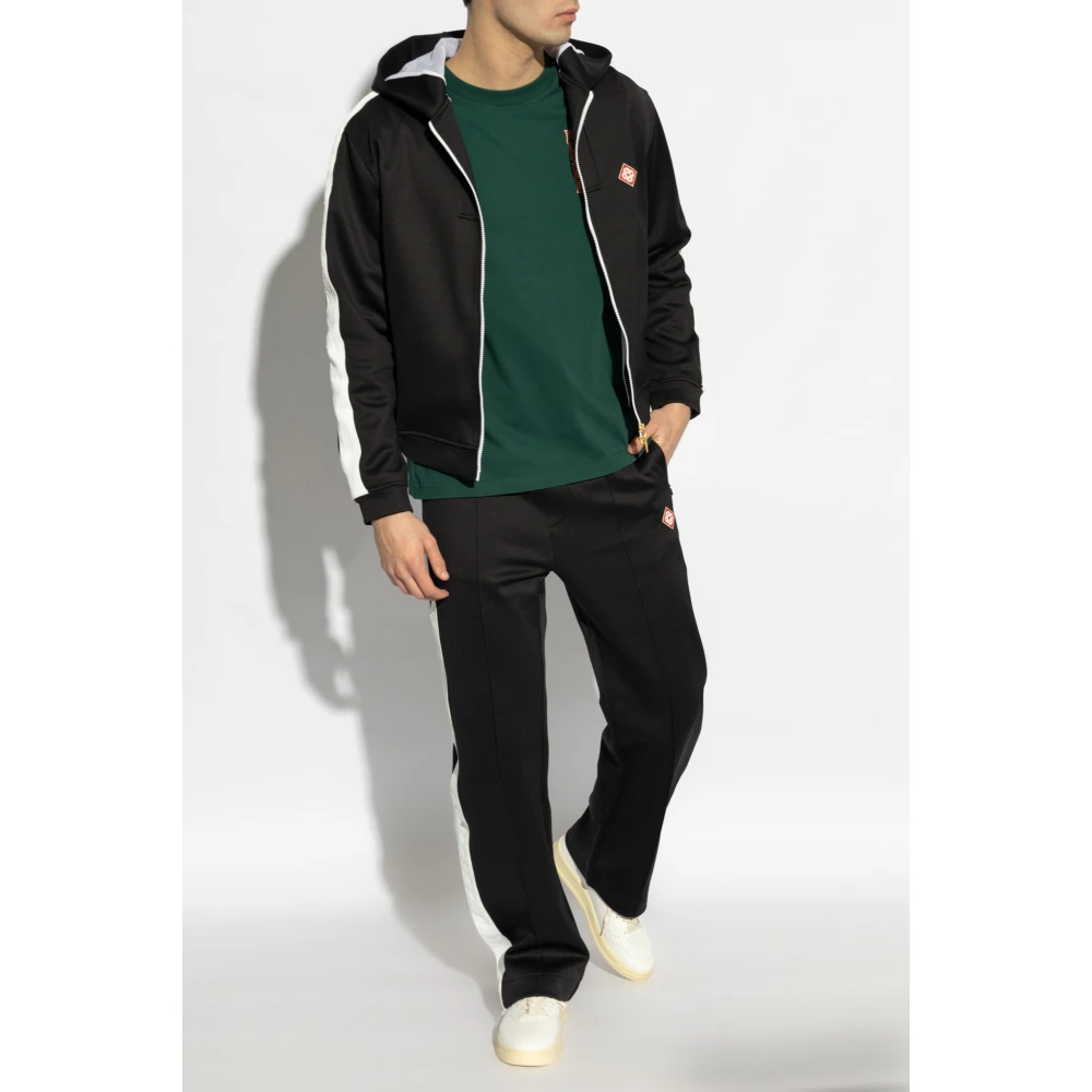 Wij presenteren Zwarte Broek MET Zijsstrepen uit de exclusieve collectie van Casablanca, opgericht door Charaf Tajer. Deze uitzonderlijk stijlvolle broek combineert luxe esthetiek met elementen van sportkleding. Gemaakt van glad en elegant stof, een mix van polyamide en katoen, heeft deze broek een rechte pasvorm met licht uitlopende pijpen. De elastische tailleband met trekkoord zorgt voor comfort, terwijl de subtiele witte zijstrepen een sportief tintje toevoegen. Een uniek detail is het logo in de vorm van een rode diamant met een wit patroon geplaatst op een van de pijpen. Een praktische toevoeging is de achterzak, die de functionaliteit verhoogt. Waarom ZOU U DIT Product Moeten Kopen? * Verfijnd ontwerp genspireerd door mediterrane stranden. * Een combinatie van luxe, comfort en sportief karakter. * Unieke details en materialen van de hoogste kwaliteit. * Ontwerp gecreerd door het gerenommeerde merk Casablanca. Model's Afmetingen Hoogte: 185 cm Borst: 92 cm Taille: 74 cm Heupen: 91 cm Model draagt maat: L