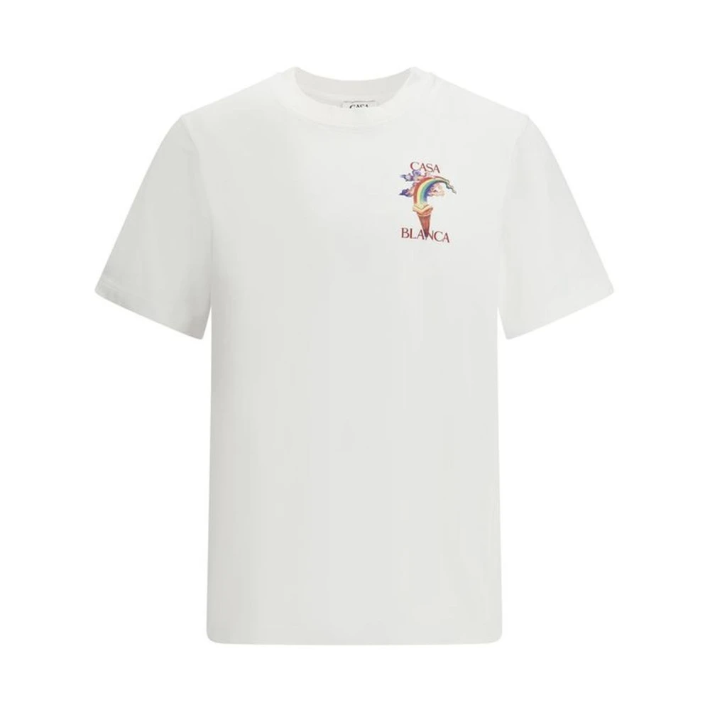 Casablanca wit logo print crew neck t-shirt voor mannen. Met een borstomvang van 112, 0 cm, mouwlengte van 25, 0 cm, lengte van 68, 0 cm en schouderbreedte van 44, 0 cm