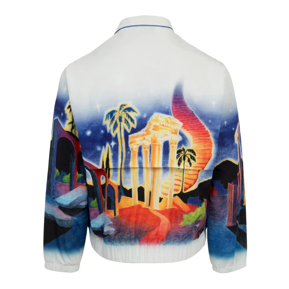 Casablanca Midnight Acropolis witte windjack met dubbele ritssluiting, twee zijzakken met rits, klassieke kraag en elastische zoom. Gemaakt van 100% polyester.