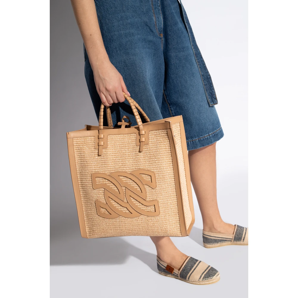 Maak kennis met de Mini Tote Bag van Casadei, gemaakt van natuurlijk gekleurde raffia en met lederen details. Deze stijlvolle tas is ontworpen voor de moderne vrouw en heeft een lederen handvat en een afneembare schouderriem voor veelzijdigheid. Het unieke C-Chain-logo voegt een vleugje verfijning toe. Of je nu door de stad loopt of geniet van een dagje aan het strand, deze tas is de perfecte stijlvolle metgezel. Gemaakt van een combinatie van leer en raffia, straalt het zowel elegantie als duurzaamheid uit.