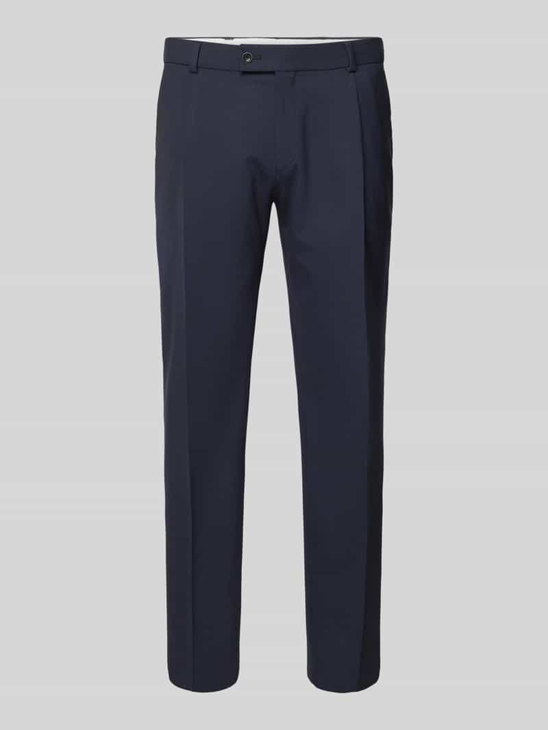 Herenpantalon van CG Club of Gents. Mix van scheerwol en elastaan. Regular fit. Model 'Peter'. Riemlussen. Persplooien. Bandwijdte bij maat 50: 34 cm. Binnenbeenlengte bij maat 50: 70 cm
