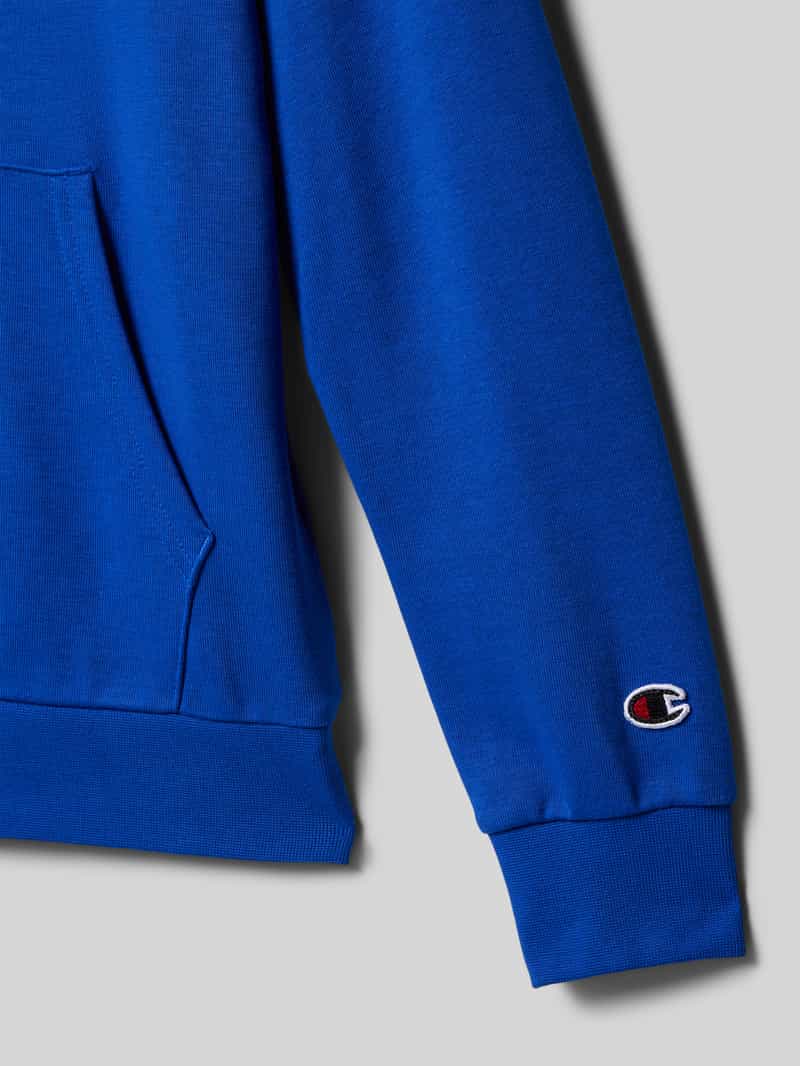 Kinderhoodie van Champion. Mix van katoen en elastaan. Los model. Capuchon. Labelstitching. Buidelzak. Ribboorden