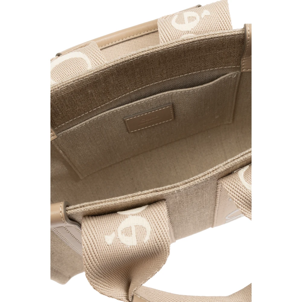 Upgrade je stijl met deze kleine tote tas van Chlo, gemaakt van linnen canvas, kalfsleer en lint met geborduurd Chlo-logo. Veelzijdig te dragen over de schouder, arm of crossbody, met twee korte handvatten, een afneembare en verstelbare lange schouderband, een groot hoofdcompartiment en een interne platte zak. Gemaakt in Itali met afmetingen B 26, 5 x H 20 x D 8 cm, handvat lengte 11 cm, en min/max schouderbreedte 52/56 cm. Samenstelling: 68% linnen, 32% katoen.