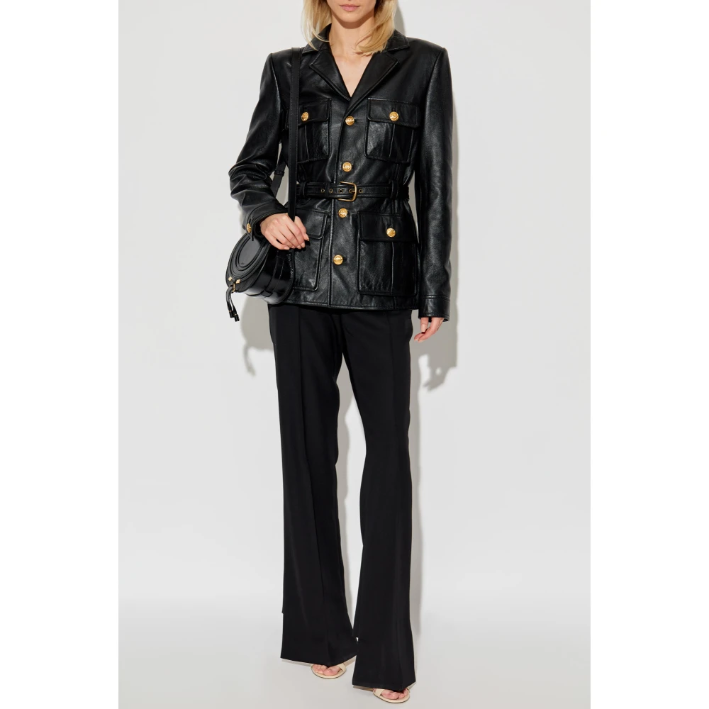 Voor degenen die streven naar een buitengewone fusie van comfort en verfijnde stijl, verdienen de zwarte wollen broeken met plooien van Chlo aandacht. Het BOYFRIEND-ontwerp boeit met zijn relaxte vorm die inspiratie put uit herenkleding, terwijl het elementen van klassieke elegantie behoudt. Subtiel uitlopende pijpen, aangevuld met een asymmetrische afwerking, geven de silhouet een luchtige en eigentijdse uitstraling. Gemaakt van 100% maagdelijke wol, zijn deze broeken het toonbeeld van luxe en kwaliteit. De gladde stof, met zijn subtiel glinsterende textuur, benadrukt het exclusieve karakter van het kledingstuk. Zwart, wat staat voor veelzijdigheid, opent eindeloze stylingmogelijkheden en maakt ze tot een essentieel stuk in elke garderobe. Hun minimalistische ontwerp, zonder zichtbare knopen of logo's, accentueert de elegantie en tijdloosheid. De broek wordt gesloten met een traditionele haak en rits, en is ook uitgerust met vier praktische zakken - twee aan de voorkant en twee aan de achterkant, wat zowel comfort als functionaliteit garandeert. Waarom DIT Product Kopen? * Luxe Materiaal: 100% maagdelijke wol garandeert de hoogste kwaliteit en draagcomfort. * Versatiliteit: De zwarte kleur en minimalistisch ontwerp betekenen dat deze broeken naadloos samengaan met verschillende elementen van de garderobe. * Unieke Snijwerk: De relaxte boyfriend-pasvorm met licht uitlopende pijpen biedt een moderne uitstraling en comfort. * Functionaliteit: Vier zakken bieden praktische oplossingen voor dagelijkse behoeften. Modelafmetingen Hoogte: 176 cm Buste: 85 cm Taille: 60 cm Heupen: 89 cm Model draagt maat: 40