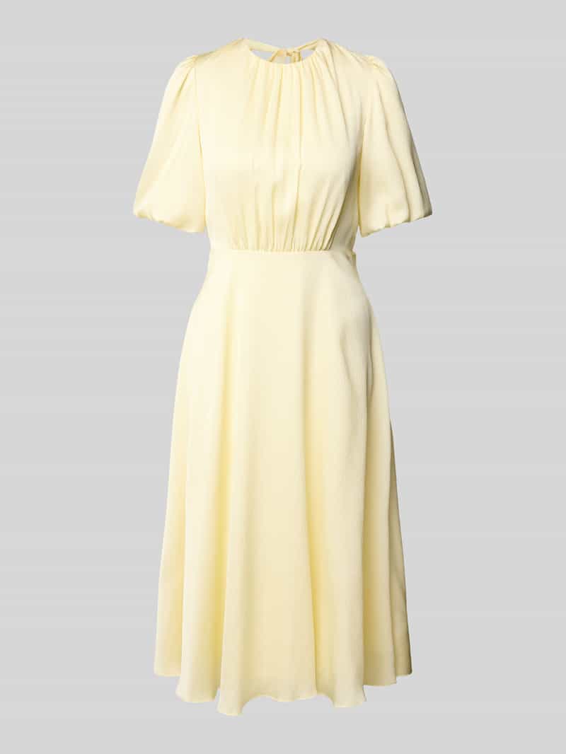 Cocktailjurk voor dames van Christian Berg Cocktail. Materiaalmix met stretch. Getailleerd model. Ronde hals. Plooien. Naadritssluiting. Ruglengte bij maat 36: 112 cm. Borstomvang bij maat 36: 41 cm. Mouwlengte bij maat 36: 32 cm