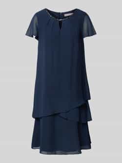Cocktailjurk voor dames van Christian Berg Cocktail. Chiffon. Recht model. Knielang. Ronde hals met siersteentjes. Naadritssluiting aan de achterkant. Ruglengte bij maat 36: 95 cm. Borstomvang bij maat 36: 41 cm. Mouwlengte bij maat 36: 19 cm