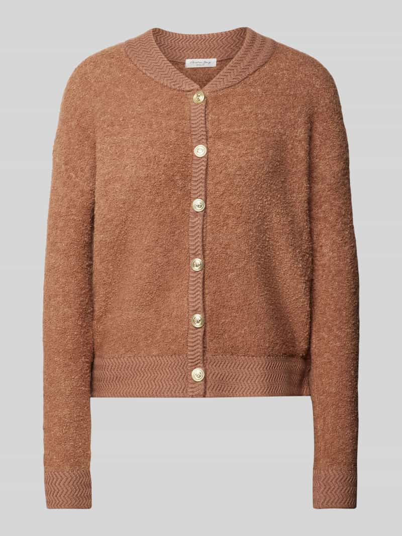 Damescardigan van Christian Berg Woman. Materiaalmix met stretch. Los model. Doorknoopsluiting. Verbrede schouders. Ruglengte bij maat S: 47 cm. Mouwlengte bij maat S: 65 cm