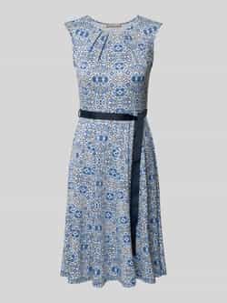 Jurk van Christian Berg Woman Selection. Viscosemix. Getailleerde pasvorm. Afneembare tailleband. Opstaande kraag. 3/4-mouw. Elastische mouwboorden. Knoopsluiting. Mouwen in semi-transparant design. Niet-doorschijnende onderrok. Knielang. Ruglengte bij maat 36: 95 cm. Borstomvang bij maat 36: 40 cm. Mouwlengte bij maat 36: 46 cm