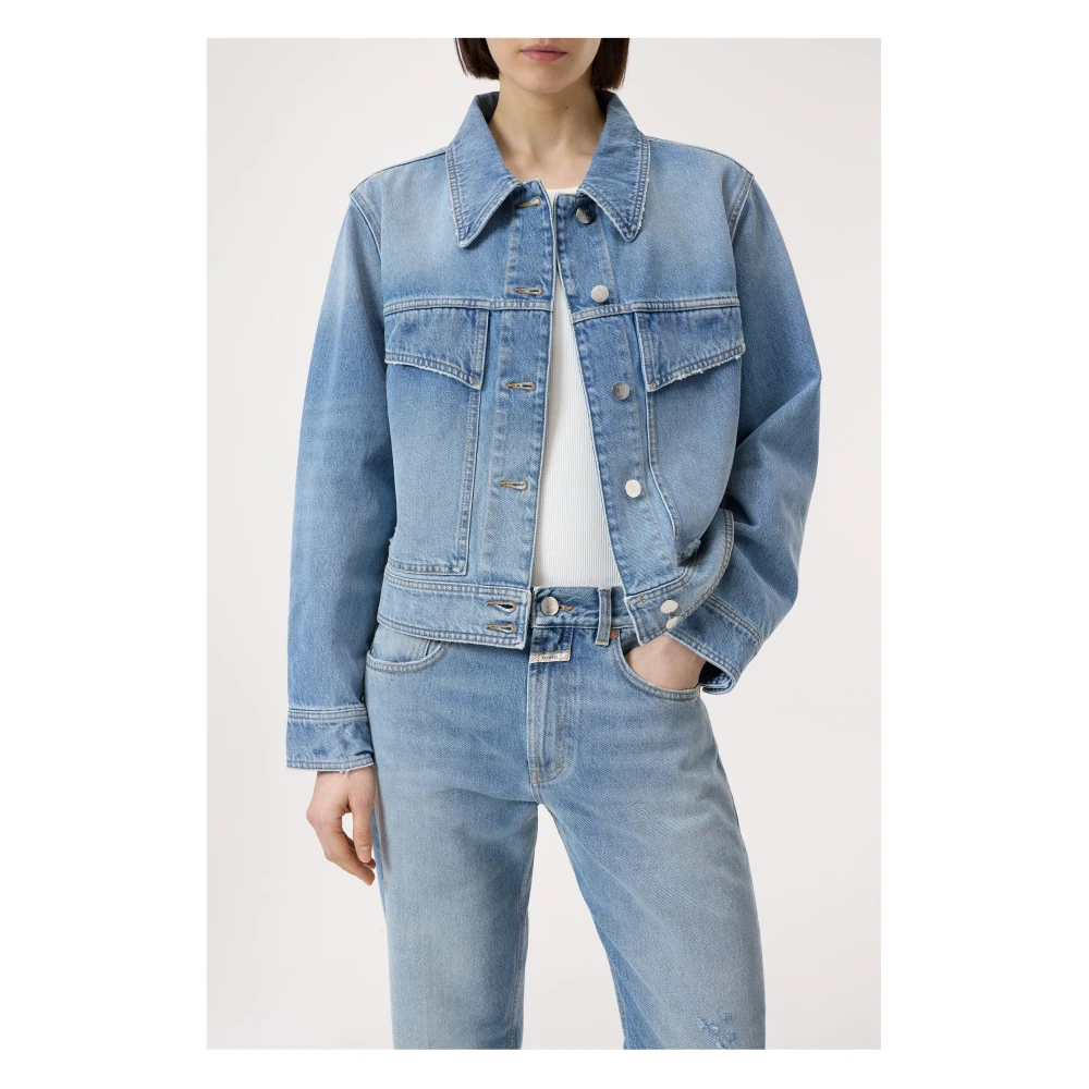 Update je garderobe met deze recht gesneden denim jack van Closed voor vrouwen. Met een klassieke kraag, lange mouwen, knoopmanchetten, knoopsluiting aan de voorkant en nepzakken. Het versleten effect en gewassen look geven het een stijlvolle uitstraling. Gemaakt van 100% katoen. Wasinstructies: Machinewas op een maximale temperatuur van 30C, professioneel reinigen met perchloorethyleen en alle oplosmiddelen vermeld met het symbool P, strijken op een maximale zooltemperatuur van 150C, niet bleken.