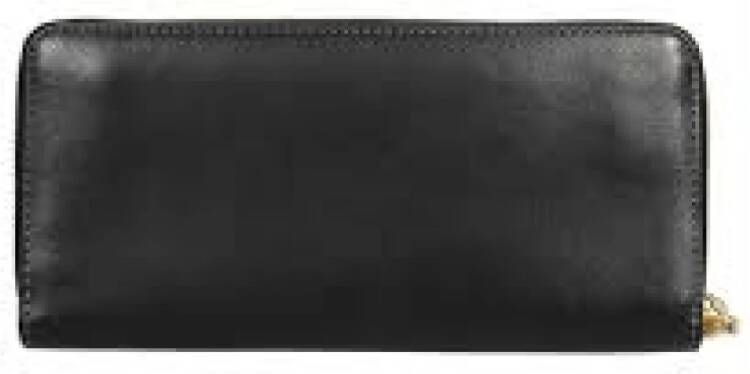 Zwarte portemonnee van Coach. Gemaakt van leer, dit item sluit met een ritssluiting en heeft een logo-plaque aan de voorkant. Het is compleet met goudkleurige metalen hardware en heeft twee vakken voor bankbiljetten, een ritsvak voor munten, twee insteekvakken en acht kaartsleuven aan de binnenkant. Breedte: 9, 5 cm Lengte: 19, 5 cm