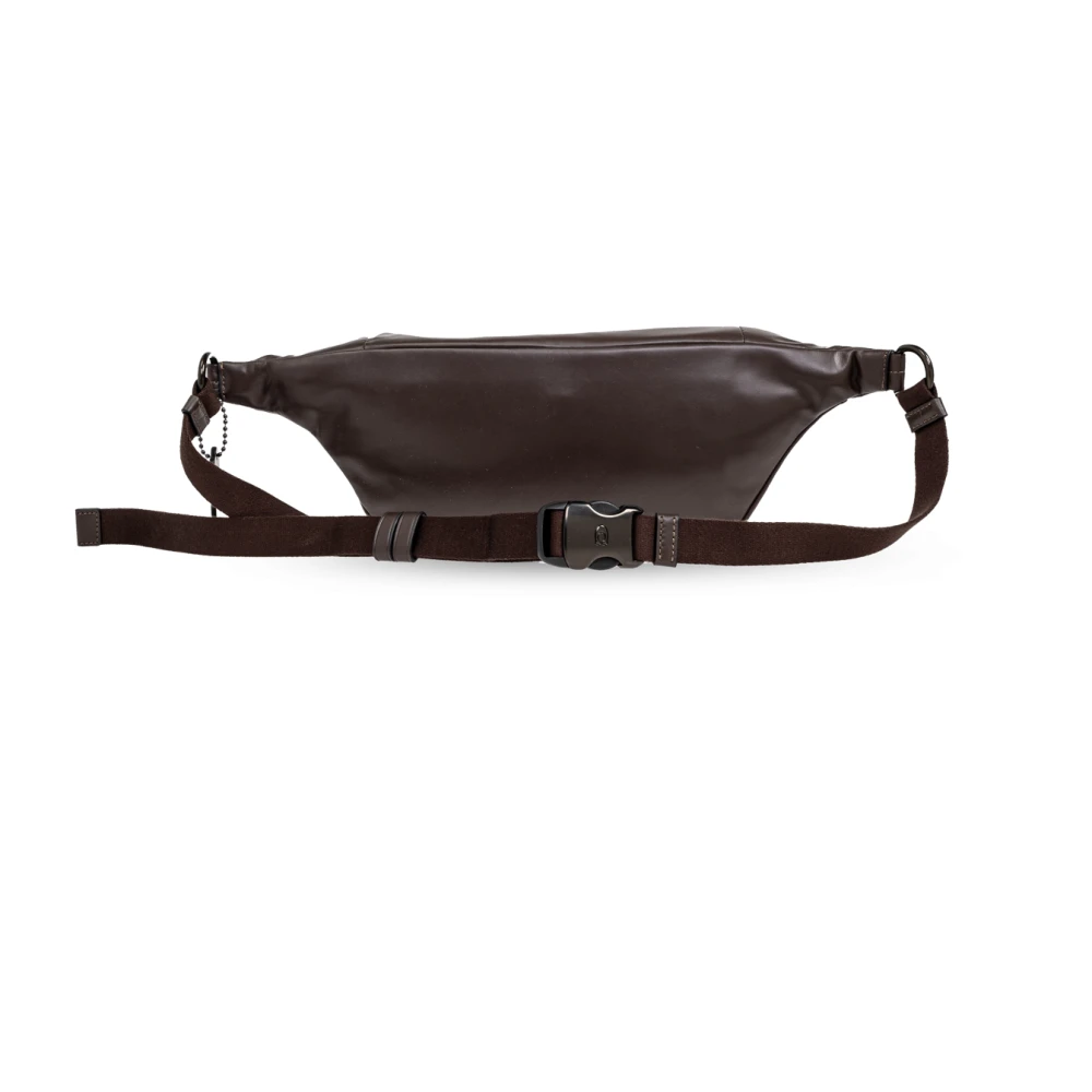 Bekijk de Coach Belt Bag, een majestueus stuk dat zich onderscheidt door zijn diepe, donkerbruine tint, belichamend de essentie van luxe en tijdloze elegantie. Vervaardigd van de fijnste kwaliteitsleer, heeft het een indrukwekkende uitstraling en biedt een naadloze textuur zonder zichtbare stiksels aan de voorkant, wat getuigt van een unieke benadering van vakmanschap. De exclusieve aard van de tas wordt geaccentueerd door een discreet maar herkenbaar ontwerperslogo, gestileerd als de letter