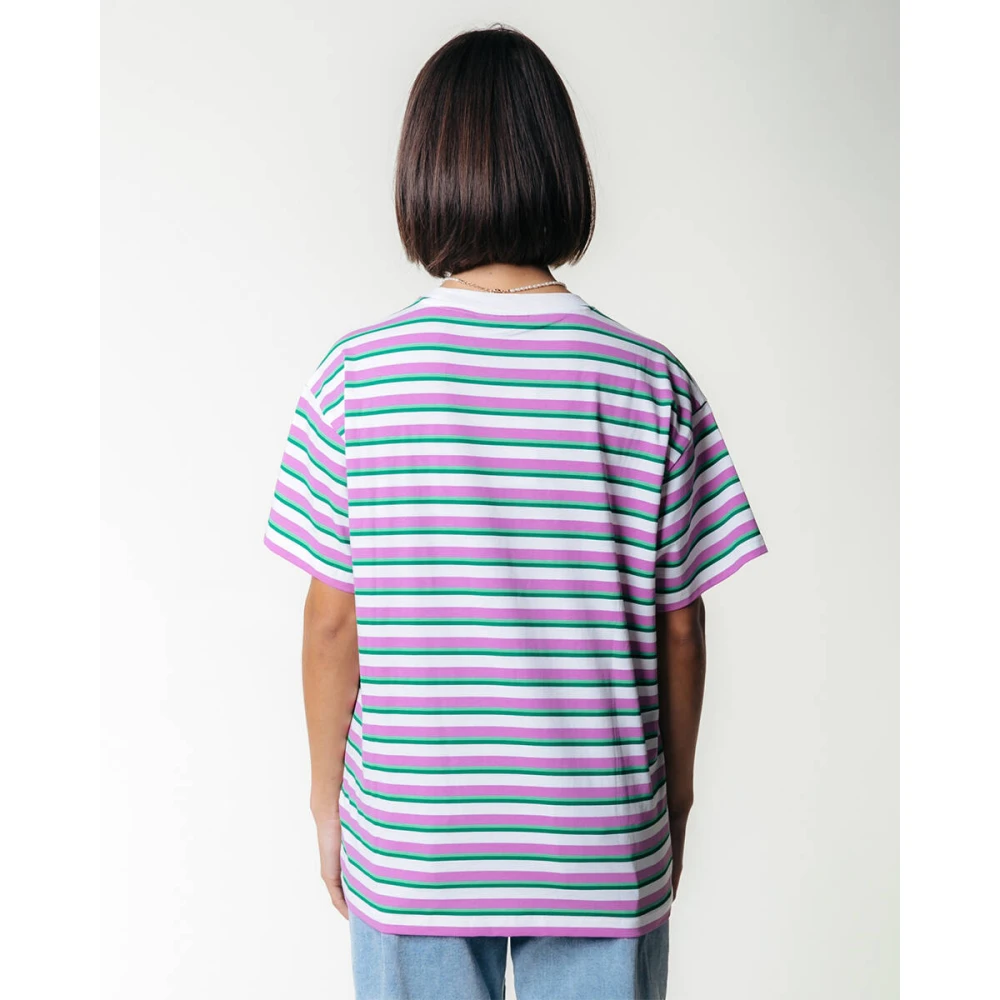 Upgrade je casual look met deze Colourful Rebel Puff Logo Stripe Loosefit Tee voor vrouwen, gemaakt van 100% katoen
