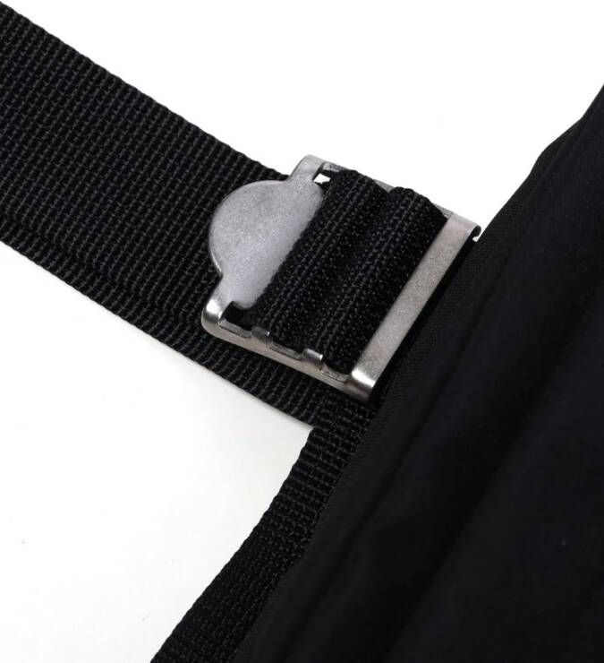 Zilverkleurig materiaal, logopatches aan de voorkant, ritssluiting aan de bovenzijde, gespsluiting, verstelbare schouderbandjes, voorzak met ritssluiting en hoofdvak.