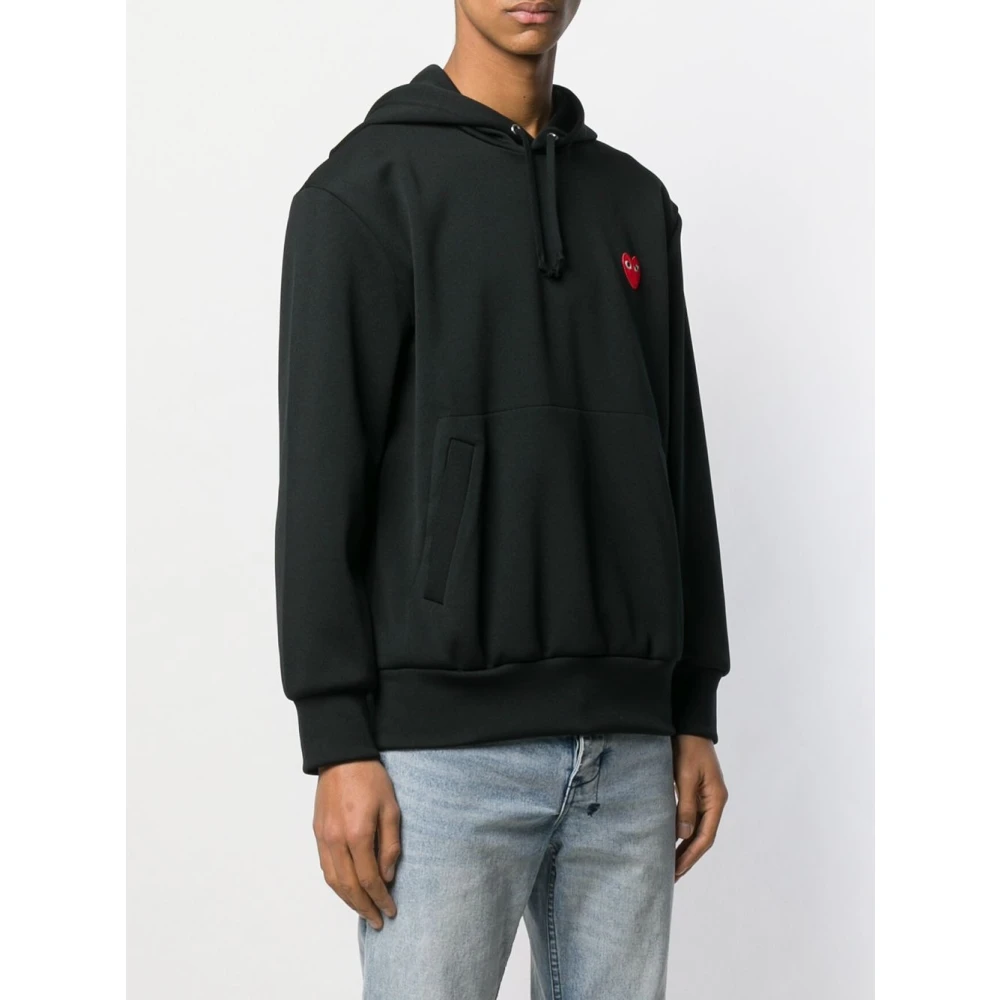 Upgrade je casual garderobe met deze zwarte Play sweatshirt van Comme des Garons Play. Gemaakt van 100% polyester, met een trekkoord capuchon, contrasterend logo op de borst, elastische manchetten en zoom en een rechte zoom. Perfect voor de moderne man. Model is 1, 86 m lang en draagt maat L.