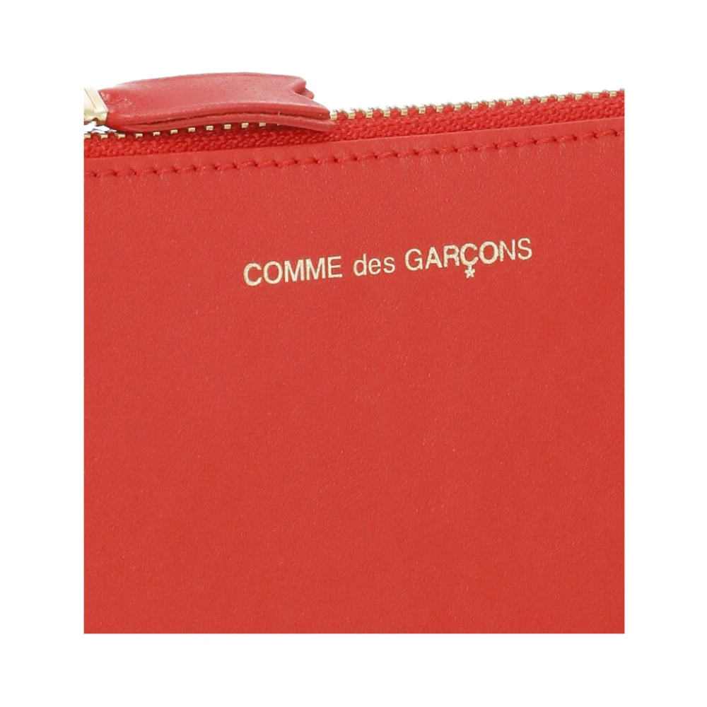 Verrijk je stijl met deze rode Comme des Garons leren portemonnee, perfect voor zowel vrouwen als mannen. Met een voorzijde met gouden reliflogo en een hoofdcompartiment met ritssluiting. Afmetingen: 10 cm x 14 cm.