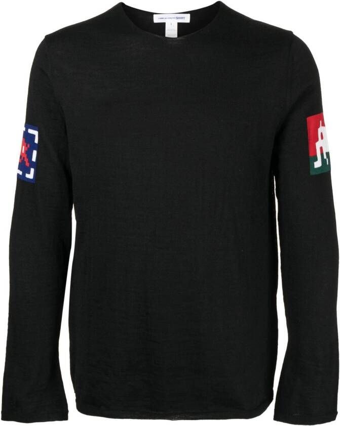 oxford blauw wol fijngebreid intarsia gebreid gemleerd effect ronde hals lange mouwen geribbelde manchetten en zoom