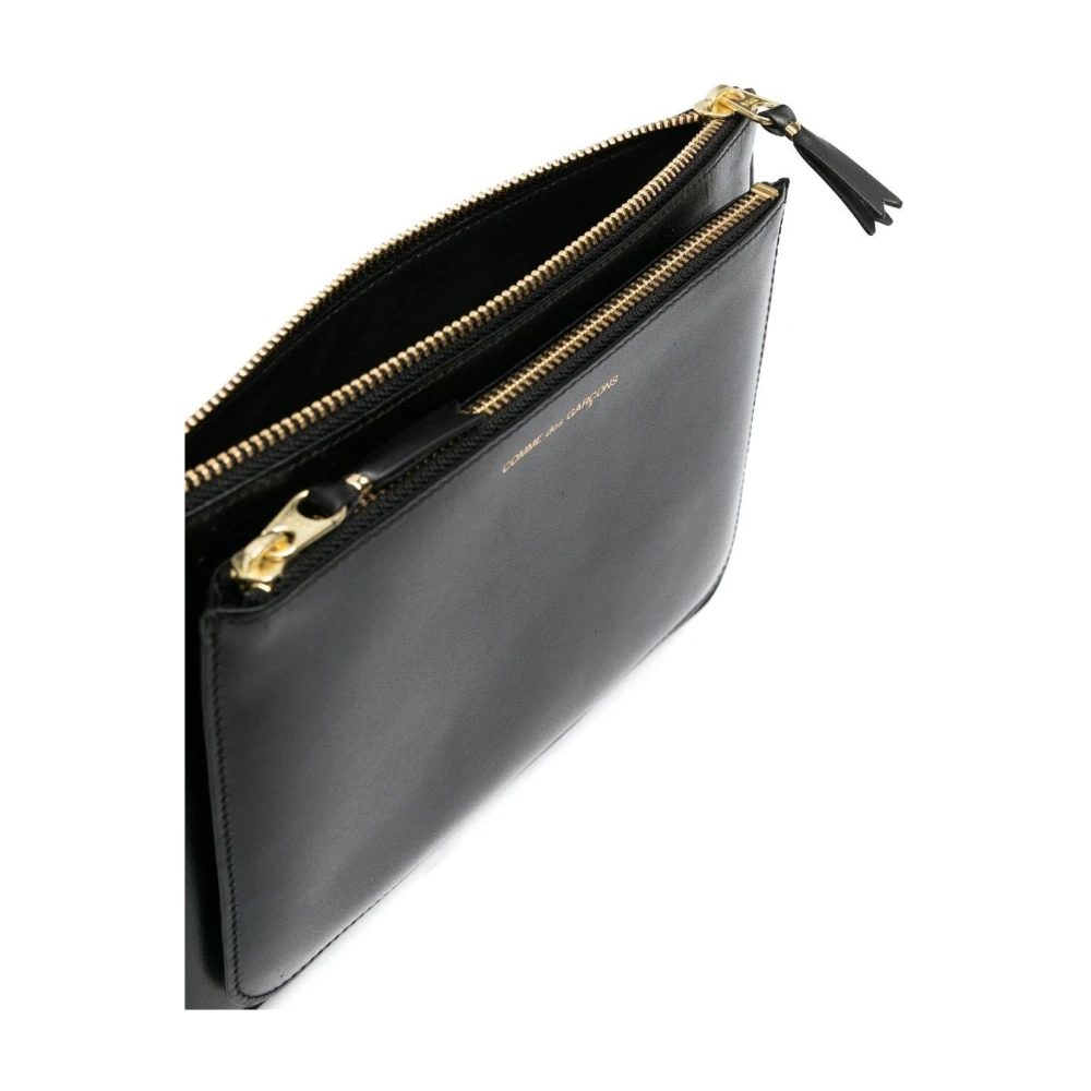 Ontdek de originele en stijlvolle Comme des Garons leren portemonnee in een groot formaat, met een kleine bovenste zak met gouden logo en rits voor munten. Deze portemonnee is een perfect cadeau-idee. Gemaakt van hoogwaardig leer in zwart. Afmetingen: 22x 16cm. Sku: Sa 5100Op.