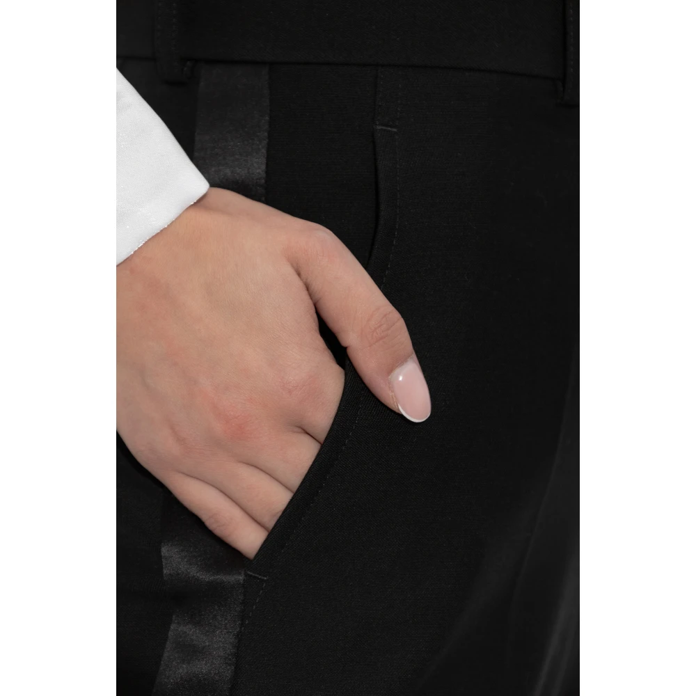 Introductie van Wool Pleated Trousers uit de exclusieve collectie Comme DES Garons Noir KEI Ninomiya. Deze klassieke zwarte broek valt op door een elegante snit die de silhouet perfect accentueert dankzij de licht toelopende pijpen. Gemaakt van de hoogste kwaliteit Wool met een vleugje mohair, garanderen ze comfort en duurzaamheid. De delicate glans van de stof voegt een luxueus karakter toe, waardoor ze een ideale keuze zijn voor formele gelegenheden. De broek heeft Klassieke Voorzakken en n achterzak met een klep en knoopsluiting. De riemlussen maken het mogelijk om een riem te dragen, en de knoop- en ritssluiting zorgen voor gebruiksgemak. Deze zwarte broek is een veelzijdige garderobe must-have, die vanwege de formele snit en elegante afwerking elke officile styling zal aanvullen. Waarom DIT Product Kopen? * Hoogwaardige wol met een vleugje mohair - comfort en duurzaamheid. * Klassieke, elegante geplooide snit - perfect voor formele gelegenheden. * Universele zwarte kleur - gemakkelijk te stylen. * Intrigerende afwerkingdetails - exclusieve afwerking. * Uniek ontwerp van Comme des Garons Noir Kei Ninomiya - traditie gecombineerd met extravagantie. Model's Metingen Hoogte: 176 cm Buste: 85 cm Taille: 60 cm Heupen: 89 cm Model draagt maat: S