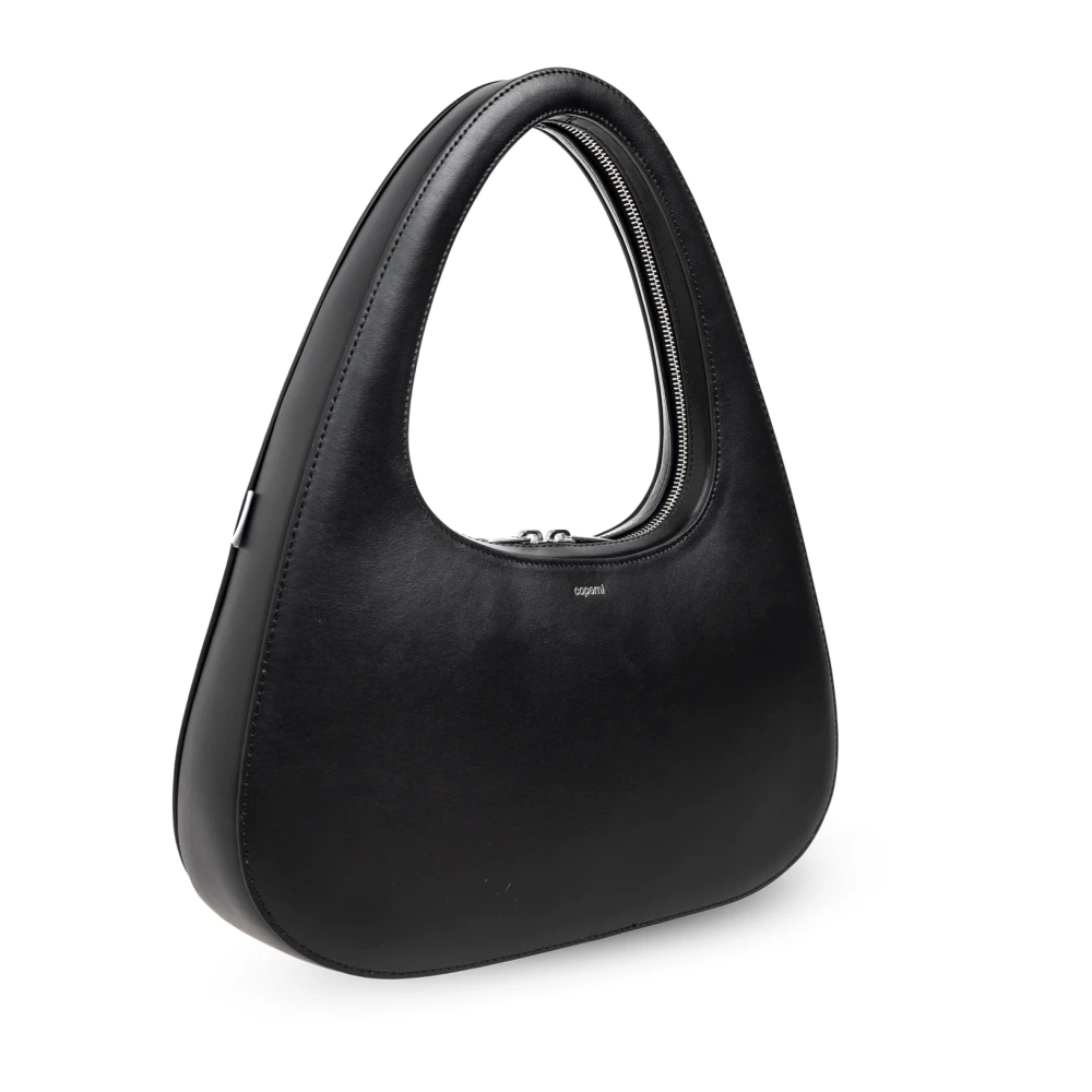 Upgrade je stijl met deze zwarte handtas van Coperni. Gemaakt van glad kalfsleer met een top ritssluiting, uitgesneden handvat en logo op de voorkant. Het hoofdcompartiment is ruim en wordt geleverd met een beschermende stofzak