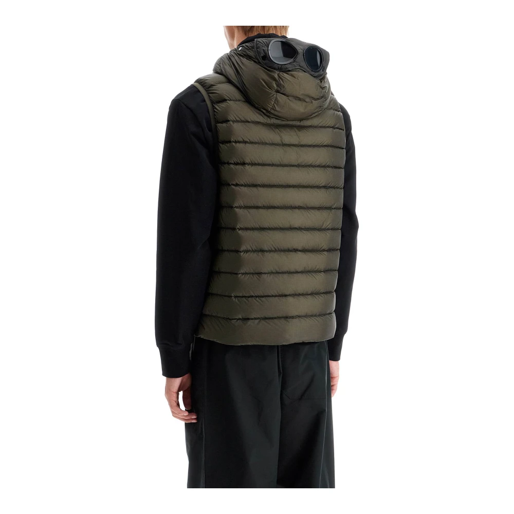 Upgrade je stijl met de CP Company gewatteerde mouwloze vest voor heren. Gemaakt van ripstop-stof en gevuld met eendendons, deze vest heeft de iconische Goggle-lenzen op de capuchon. Tweewegritssluiting, klepzakken en gevoerd interieur met een binnenzak. Regular fit. Model is 187 cm lang en draagt maat L.