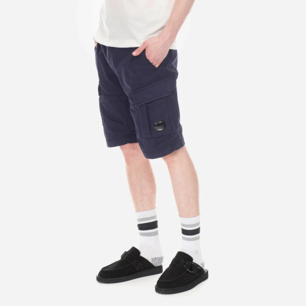 Upgrade je casual stijl met deze heren Cargo Shorts van C.p. Company. Gemaakt van een mix van 98% katoen en 2% elastaan, deze navy blauwe shorts hebben een ritssluiting en knoopsluiting, riemlussen, zij- en cargozakken en het minimalistische logo label van het merk. Met een regular fit en regular rise zijn deze shorts perfect voor het voorjaar/zomer 23.