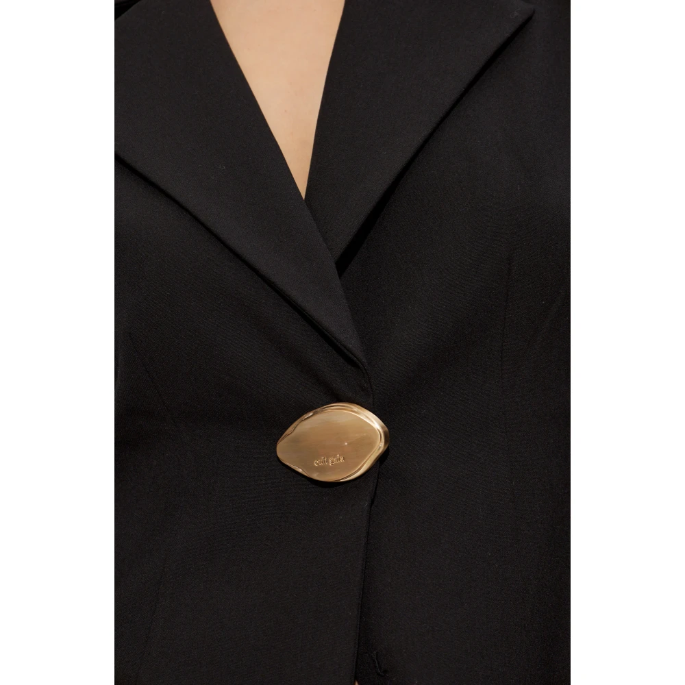 Hier is de 'Emma' Blazer uit de exclusieve collectie van het merk Cult Gaia, gevestigd in Los Angeles. Het is de essentie van elegantie en verfijnde stijl, perfect voor vrouwen die zowel klassieke als moderne accenten waarderen. De blazer overtuigt met zijn Klassieke Snijt, met een duidelijke taille, lange mouwen en een traditionele reverskraag. Gemaakt van materialen van de hoogste kwaliteit, past het perfect op de silhouet en geeft de drager een gevoel van luxe. Een van de meest kenmerkende elementen is de Gouden Knop met een onregelmatige vorm, die de exclusiviteit van het ontwerp benadrukt. Het subtiele ontwerperslogo siert zachtjes dit centrale sluitpunt. Waarom ZOU U DIT Product Kopen? * Klassieke, tijdloze snit met moderne details. * Gemaakt van luxueuze materialen die zorgen voor een elegant uiterlijk. * Gouden knoop met logo als uniek detail dat stijl toevoegt. * Perfect voor formele gelegenheden, waardoor u in elke situatie kunt schitteren. Model's Afmetingen Hoogte: 177 cm Buste: 83 cm Taille: 61 cm Heupen: 89 cm Model draagt maat: 4