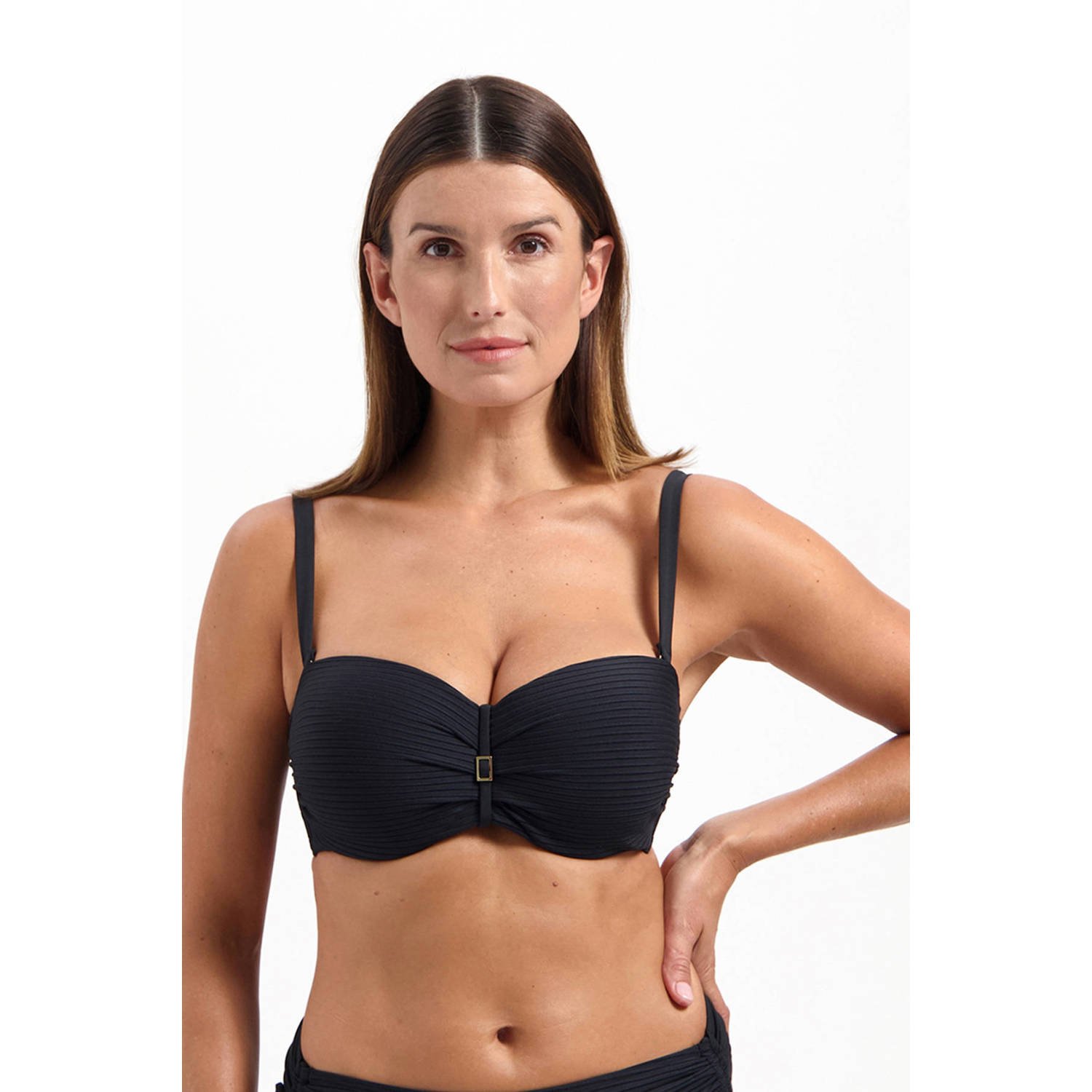 Deze dames mix & match bandeau bikinitop van Cyell is gemaakt van een polyamidemix. Het voorgevormde model heeft vaste softcups. De bikinitop is voorzien van een clipsluiting. De siliconentape aan de binnenzijde zorgt ervoor dat je bikinitop niet afzakt.