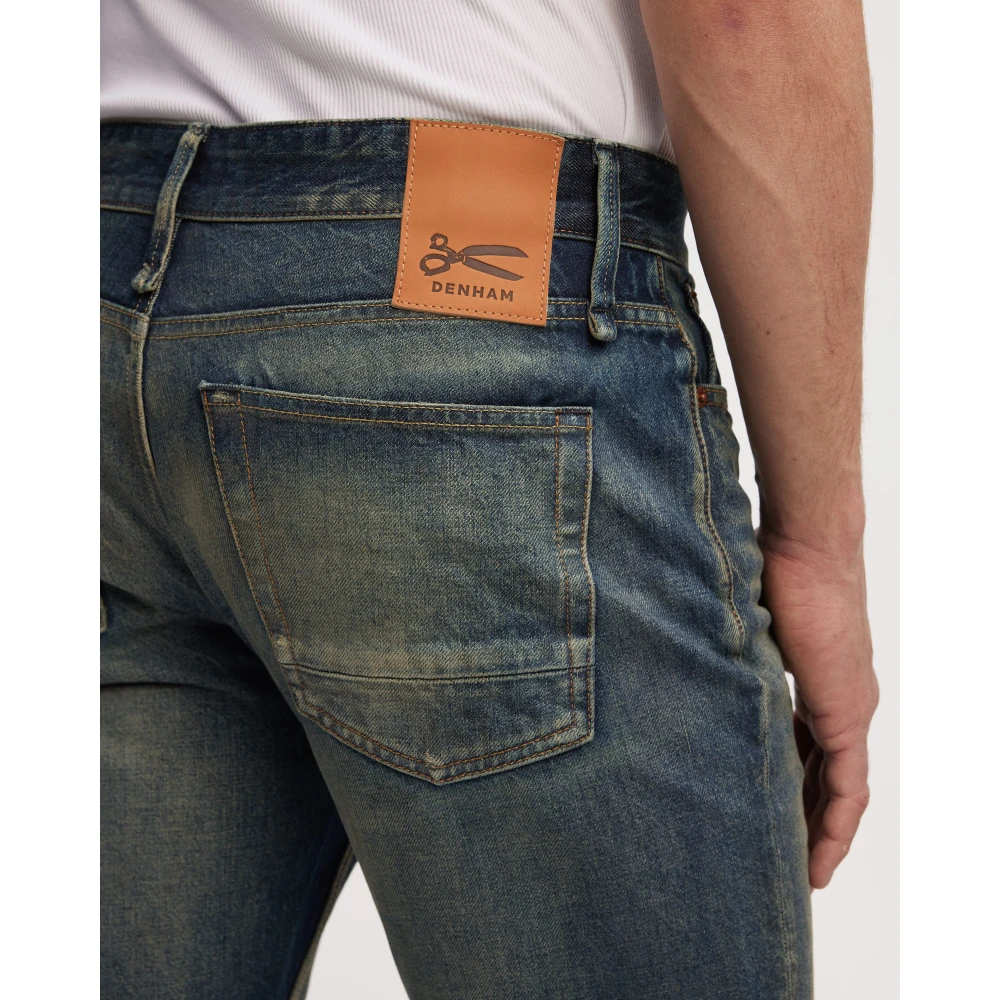 Ontdek de klassieke Ridge slim-fit jeans van Denham, ontworpen voor mannen. Gemaakt van klassiek denim met een donkere wassing voor een vintage look, hebben deze jeans een regelmatige, rechte pijp, een middelhoge taille en een comfortabele pasvorm. Met vijf zakken en knoopsluiting zijn deze jeans genspireerd op een model uit het DENHAM-archief.