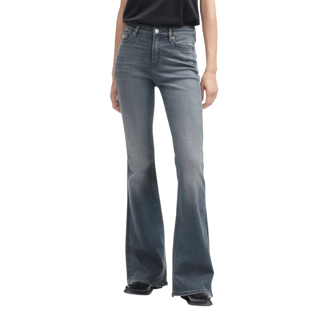 Upgrade je denimcollectie met deze wijde jeans van Denham. Met een hoge taille en een aansluitende pasvorm zijn deze jeans ontworpen met een wijde pijp en klassieke 5-pocket stijl. Het snor-effect op het dijbeen en de distressed details op de zakken en zoom voegen een edgy touch toe. Gemaakt van comfortabele stretch denim zijn deze wijde jeans een must-have voor de modebewuste vrouw. Het model is 1, 67 m lang en draagt maat 26/32.