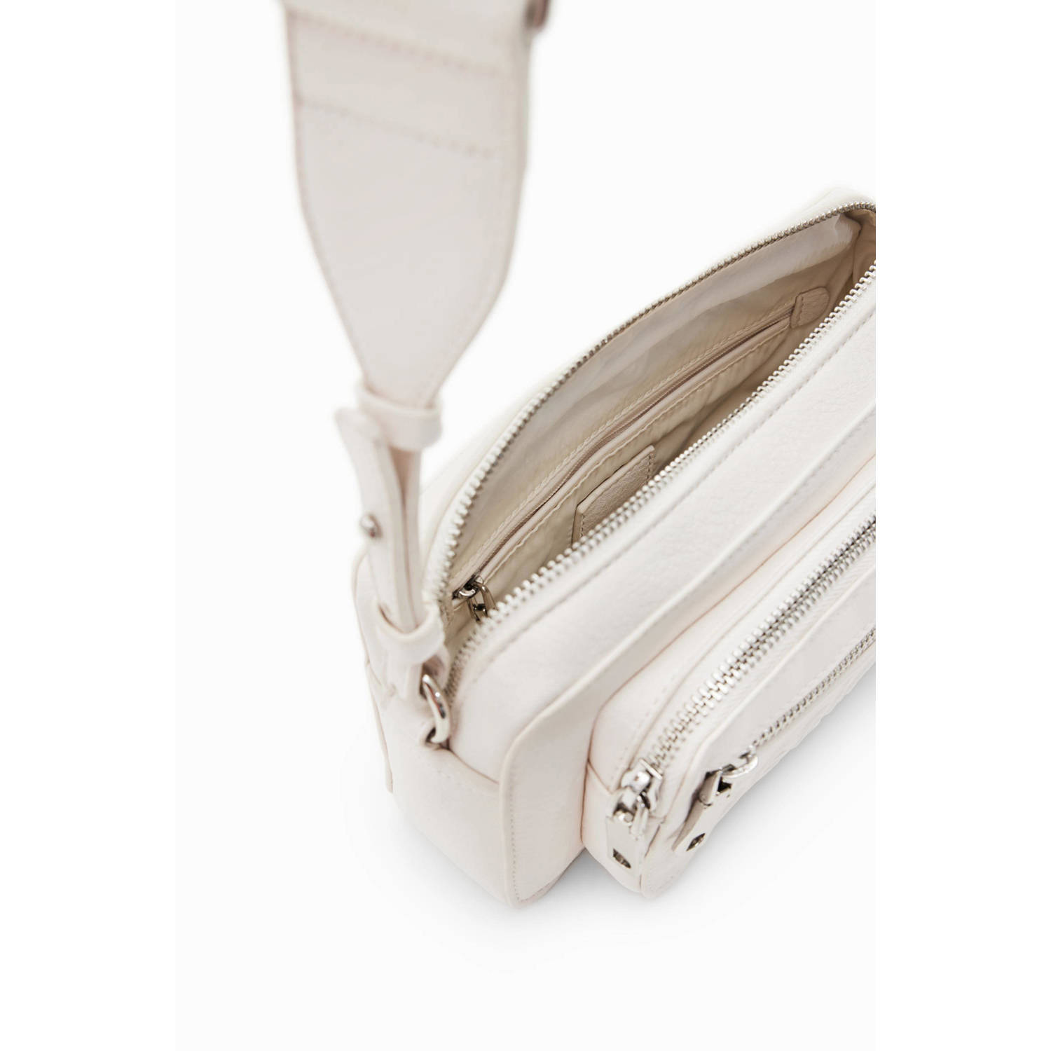 Upgrade je stijl met deze Desigual crossbodytas in wit polyethyleen. Met afneembaar schouderhandvat, dubbele verstelbare en afneembare schouderriem, 2 externe zakken, 1 interne zak, ritssluiting en het iconische merklogo