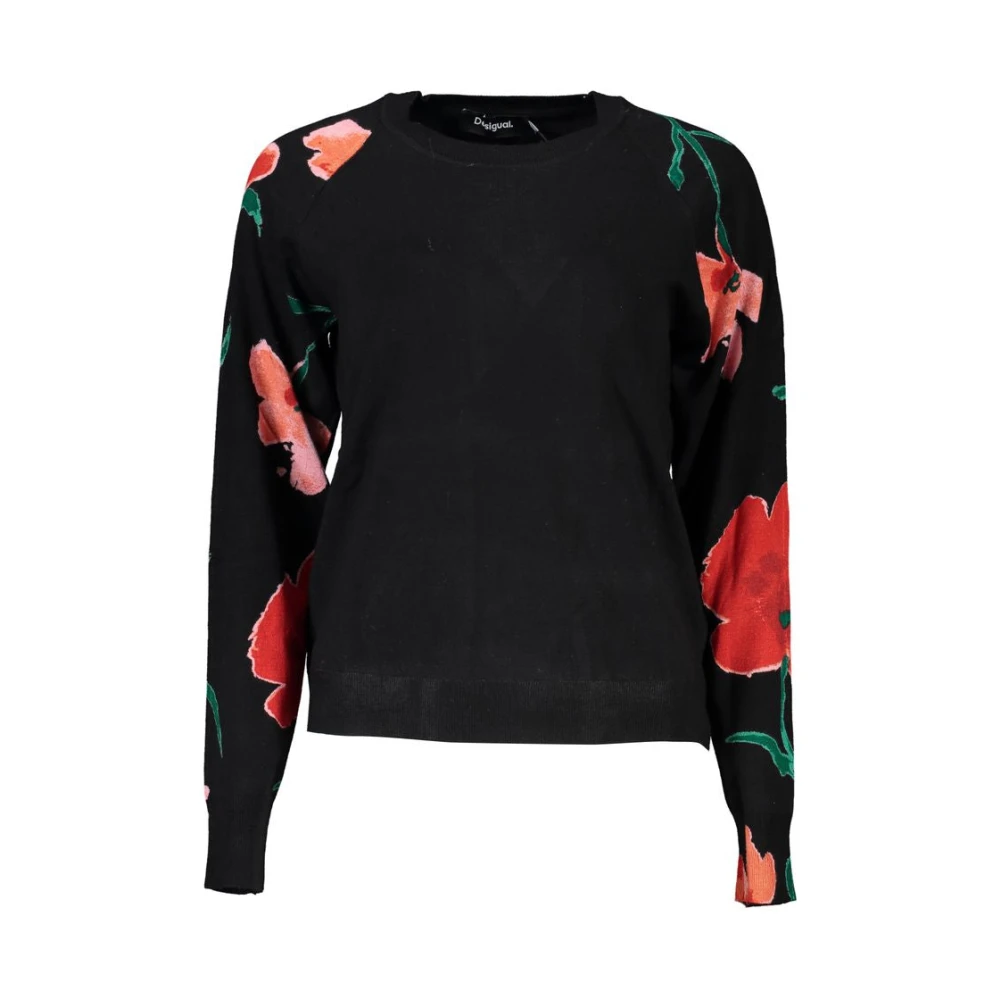 Upgrade je casual look met deze stijlvolle zwarte viscose trui van Desigual. Met contrasterende details, een ronde hals en een trendy print en logo is deze trui met lange mouwen perfect voor de modebewuste vrouw