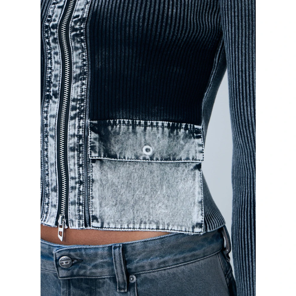 Upgrade je stijl met de Diesel M-Melissa cardigan. Deze geribbelde vervaagde cardigan heeft een hoge hals, ritssluiting aan de voorkant en lange mouwen. Gemaakt van 100% katoen. Alleen handwas.