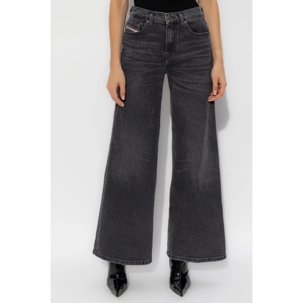 Koop de Diesel D-Akemi Wide Jeans in het zwart voor vrouwen, gemaakt van katoen-elastaan met een ontwerp met vijf zakken. Onderdeel van de Lente-Zomer 2025 collectie, biedt het een casual stijl
