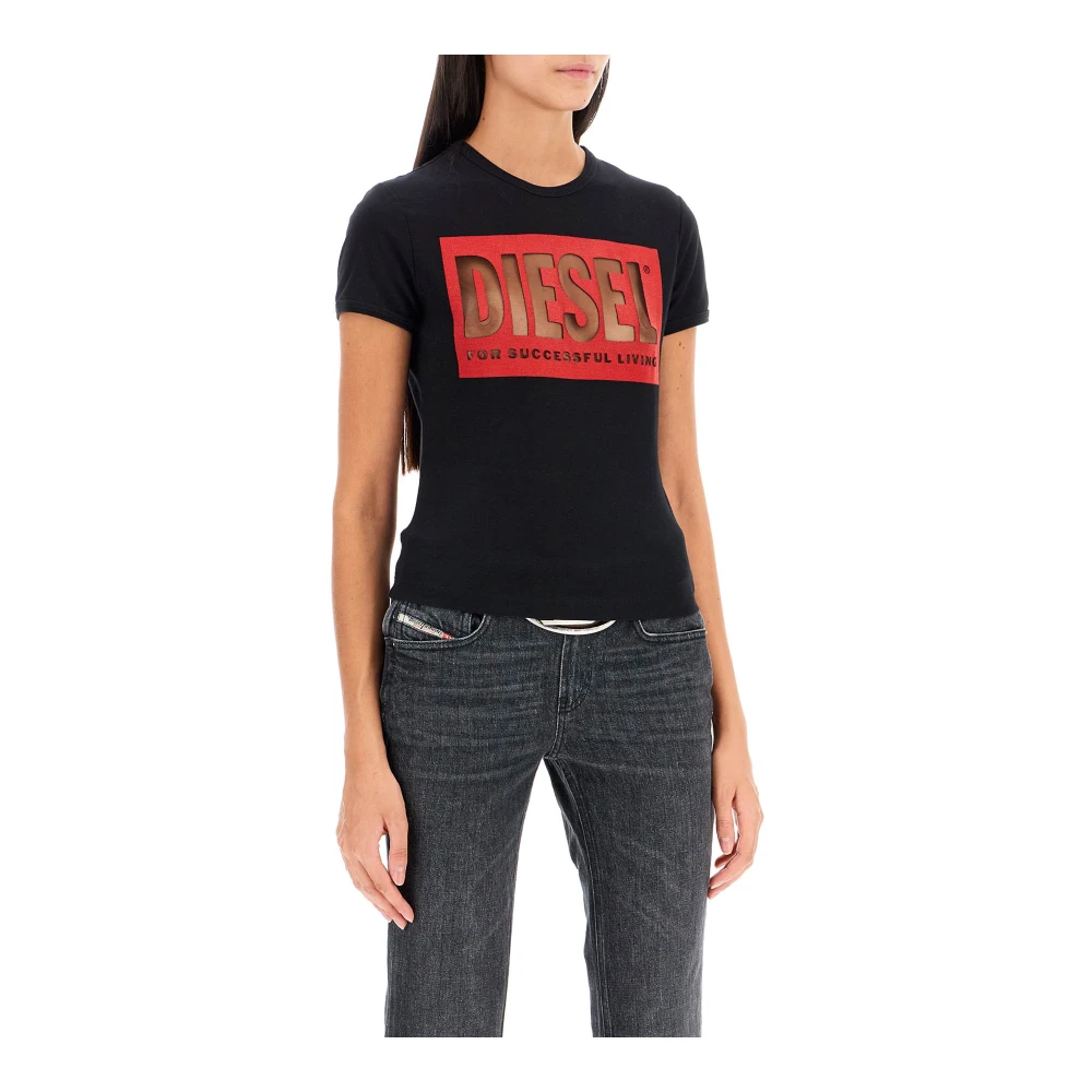 Upgrade je casual look met de T-Malun Diesel t-shirt voor vrouwen. Gemaakt van stretch katoenen jersey, deze tee heeft een opvallend logo-opschrift, ronde hals en micro-geribbelde randen voor een licht aansluitende pasvorm. Model is 177 cm lang en draagt maat XS.