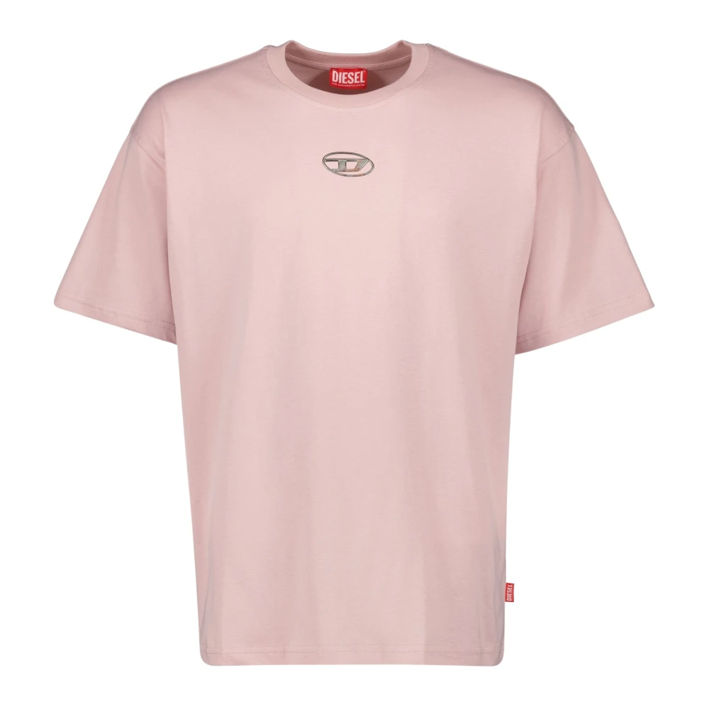 Wij presenteren het exclusieve T-Shirt MET Logo T-Boxt-S5 van het gerenommeerde merk Diesel. Dit lichtroze, klassieke T-shirt met een rechte pasvorm, korte mouwen en een ronde hals combineert elegantie en comfort en biedt een losse pasvorm die zorgt voor bewegingsvrijheid. Gemaakt van 100% Katoen van de hoogste kwaliteit, is het materiaal zacht en aangenaam om aan te raken en garandeert het de hele dag comfort. Op de voorkant van het T-shirt, op borsthoogte, bevindt zich een metalen ovaalvormig logo met de letter