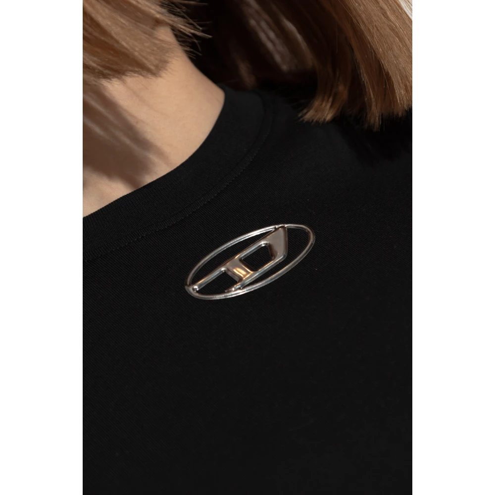 Introducing the black T-Shirt T-Regs-Od-Q1 from the exclusive Diesel collection, which has been captivating with its unique style for years. Made from smooth, stretchy cotton, this classic model with a simple cut, short sleeves, and a round neckline embodies the essence of elegance. The centerpiece of this T-shirt is a decorative emblem in the shape of an ellipse, likely with a metallic finish, giving it a modern character. It is an excellent choice for styling with dark jeans and a jacket, highlighting its versatility in everyday fashion. Waarom ZOU U DIT Product Kopen? * Hoogwaardig materiaal - 100% katoen zorgt voor draagcomfort. * Origineel ontwerp met een embleem voegt chic en elegantie toe. * Universele pasvorm past bij veel stijlen. * Het Diesel-merk staat garant voor duurzaamheid en prestige. Model's Metingen Hoogte: 176 cm Buste: 85 cm Taille: 60 cm Heupen: 89 cm Model draagt maat: S