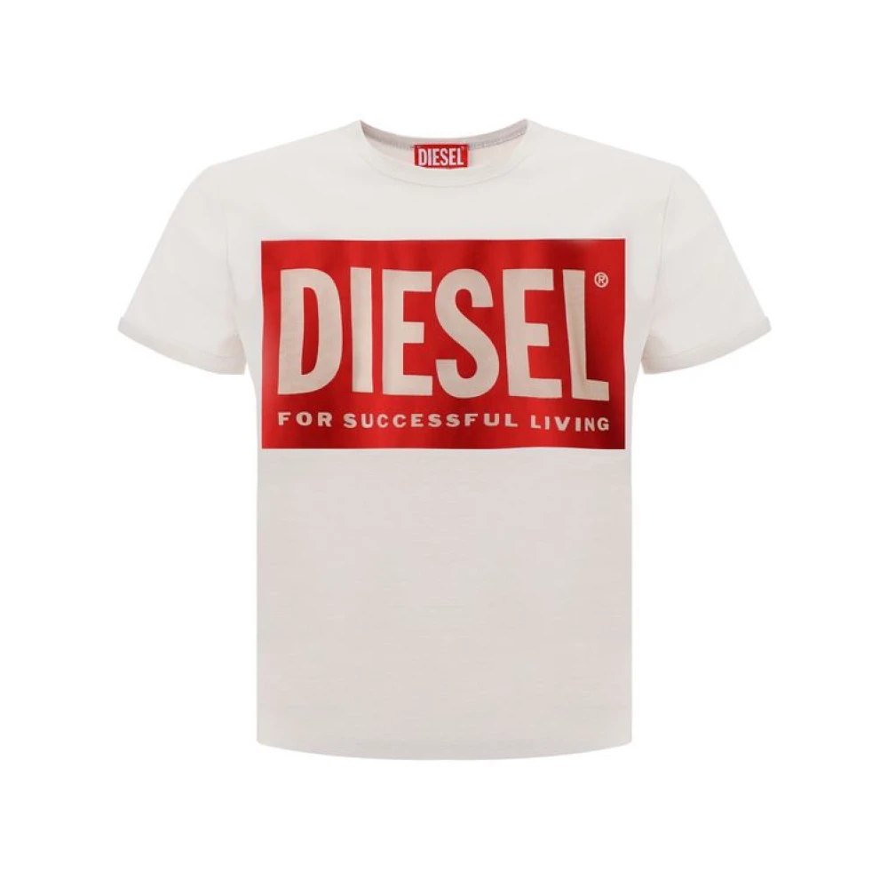 Diesel T-Malun T-shirt uit de Herfst-Winter 2024 collectie voor vrouwen. Gemaakt van katoen. Witte kleur. Ronde hals en korte mouwen. Verkrijgbaar in meerdere varianten