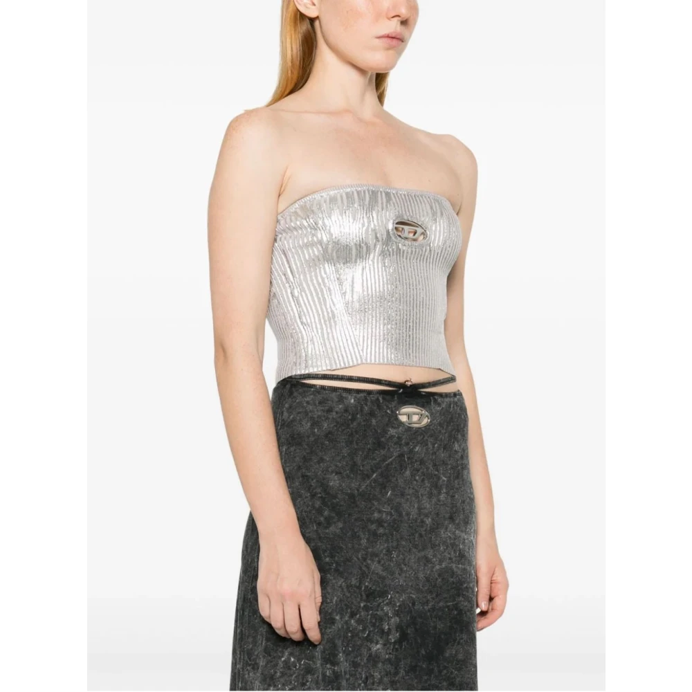 Val op in stijl met deze prachtige Diesel Metallic Tops. De metallic kleur voegt een vleugje glamour toe aan je outfit, perfect voor elke gelegenheid. Gemaakt voor vrouwen die graag een statement maken, zijn deze tops een must-have in je garderobe. Verhoog je look met Diesel!