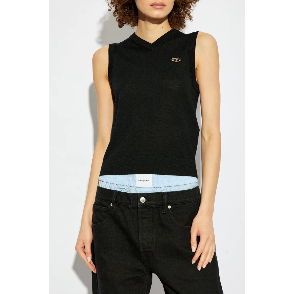 Maak kennis met de M-Aligea Vest van het gerenommeerde Italiaanse merk Diesel, dat al jaren de wereld betovert met zijn exclusieve ontwerpen. Deze zwarte vest, onderdeel van de nieuwste collectie, combineert klassieke stijl met moderne accenten. Gemaakt van de hoogste kwaliteit wol, garandeert het niet alleen comfort, maar ook ongevenaarde elegantie. De mouwloze vest heeft een eenvoudige snit met een V-hals, die de silhouet accentueert. Delicate ribbels op de kraag en mouwen, samen met het subtiele gouden merklogo op de borst, zijn verfijnde details die een verfijnde stijl toevoegen. Waarom ZOU U DIT Product Moeten Kopen? * Veelzijdig karakter - eenvoudig te combineren met veel outfits. * Gemaakt van natuurlijke wol - duurzaamheid en draagcomfort. * Elegante details - gouden logo en subtiele ribbels. * Product van het gerenommeerde merk Diesel, bekend om zijn kwaliteit en innovatieve ontwerp. Model's Afmetingen Hoogte: 177 cm Buste: 83 cm Taille: 61 cm Heupen: 89 cm Model draagt maat: S