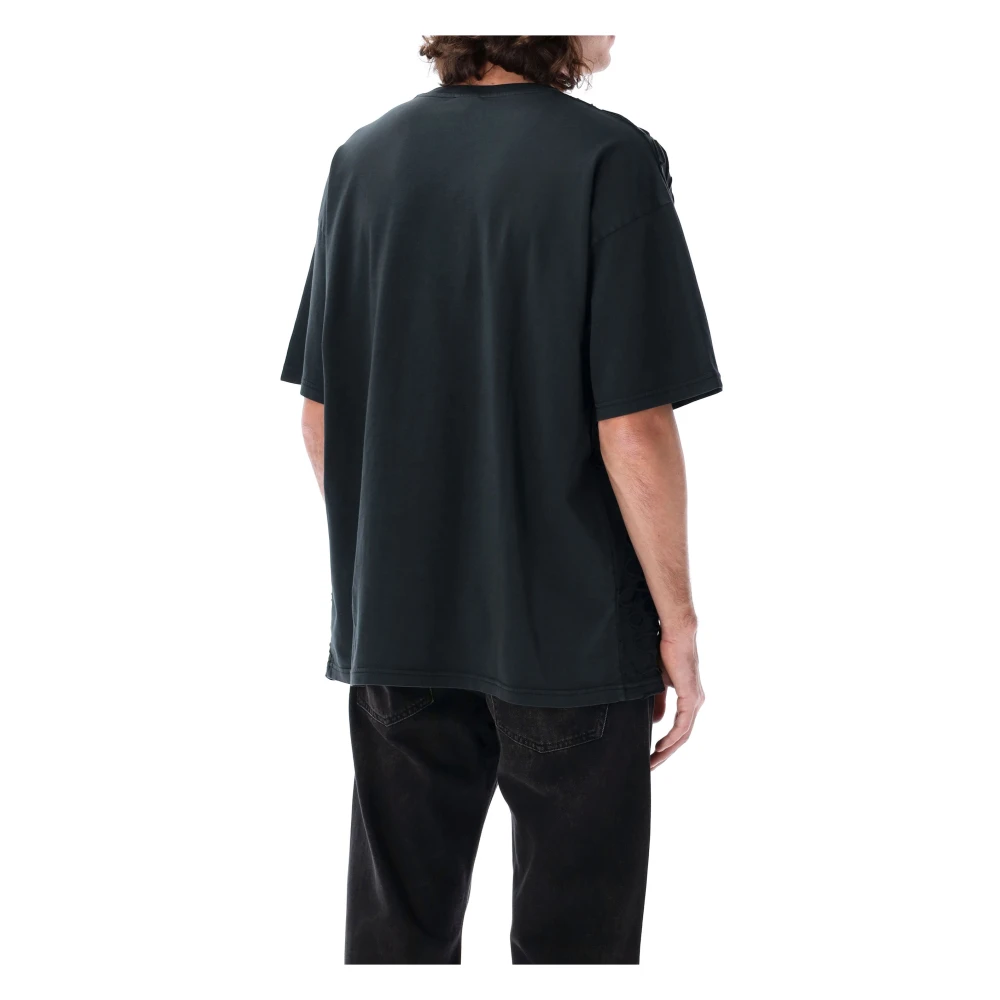 Upgrade je casual stijl met het Diesel T-Boxt-R29 t-shirt. Gemaakt van 100% katoen jersey, dit t-shirt heeft een ronde hals, korte mouwen en een unieke vernietigde esthetiek aan de voorkant. Het asymmetrische fade-print en logo-print op de borst voegen een moderne touch toe aan dit oversized shirt. Model is 1, 90 m lang en draagt maat L.