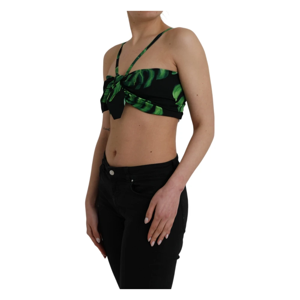 Upgrade je stijl met deze mouwloze halternek top van Dolce & Gabbana met een chique zwart en groen bladmotief. Gemaakt in Itali met een cropped lengte en ritssluiting, is deze top vervaardigd uit 89% zijde en 11% elastaan. Compleet met logo details voor een vleugje luxe.