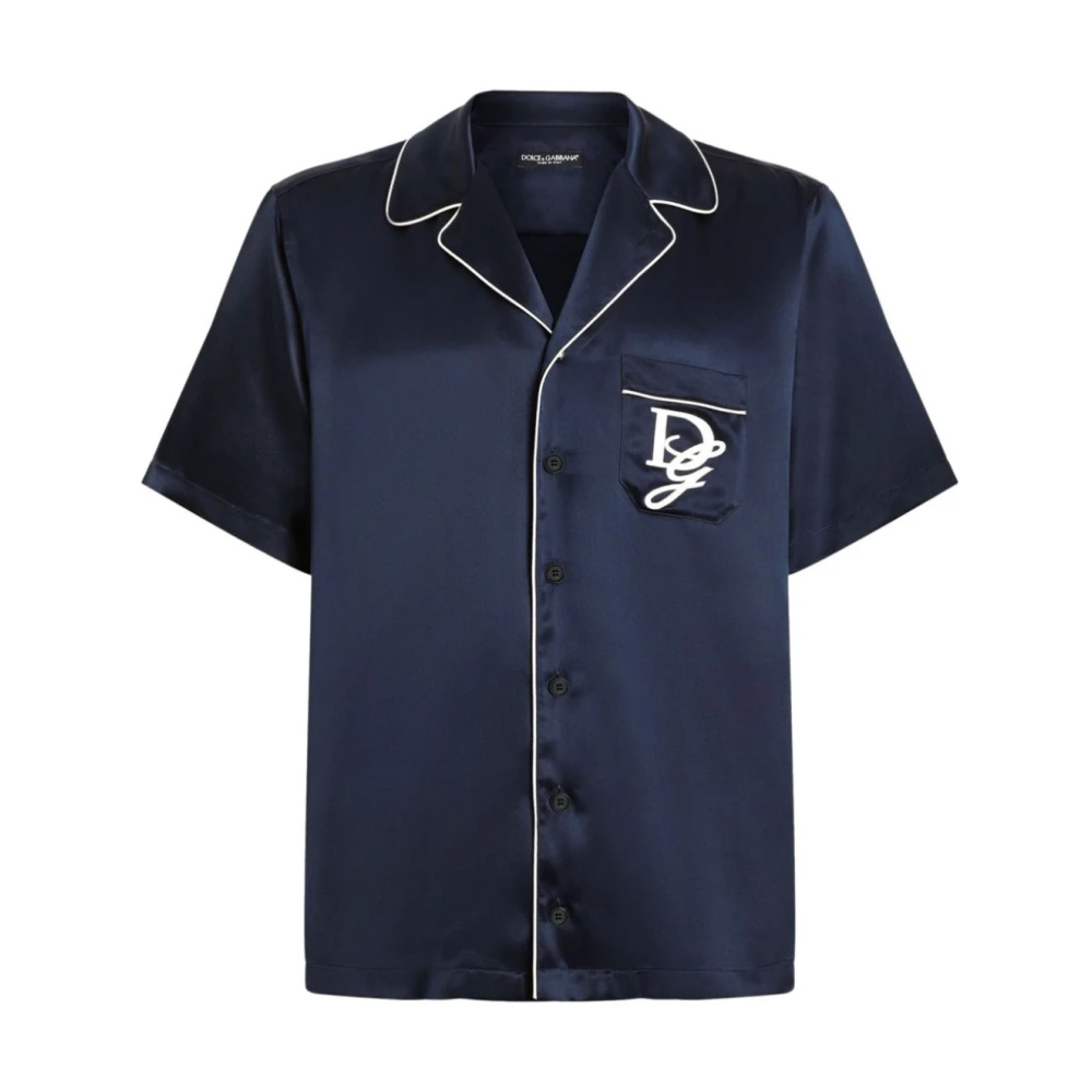 Upgrade je stijl met deze Dolce & Gabbana Denim Shirt voor heren. Met een blauwe kleur, voorsluiting met drukknopen, twee borstzakken, borstlogo en een logoprint op de achterkant. Gemaakt van 100% stof. Wasinstructies: Volg de richtlijnen van de fabrikant. Productcode: G5Mq 8Zg 8Mk 5S9001.