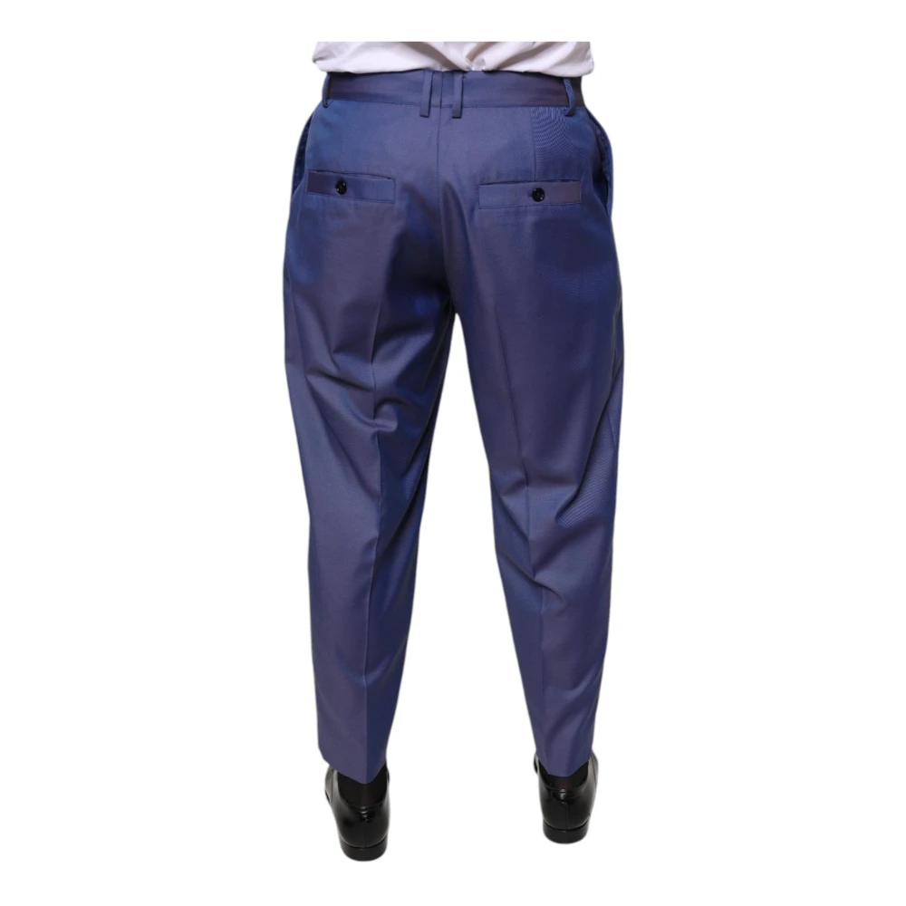 Upgrade je formele look met deze Dolce & Gabbana suit trousers in klassiek blauw. Gemaakt in Itali van een mix van zuivere wol en polyester, deze pantalons hebben een regular fit, ritssluiting en knoopsluiting, en subtiele logo details. Verkrijgbaar in maat It 48 | M.