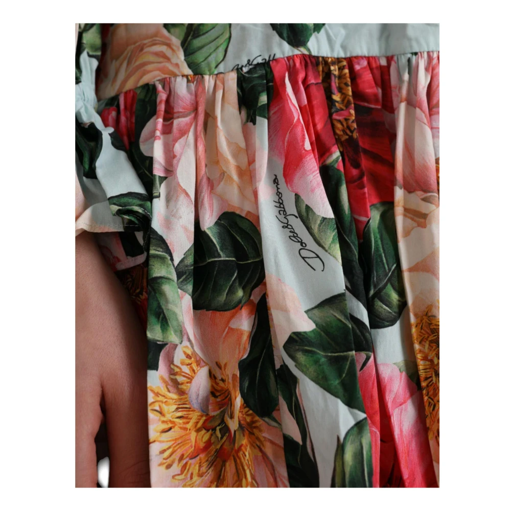 Upgrade je garderobe met deze 100% authentieke Dolce & Gabbana Multicolor Floral Print Midi Jurk. Met een A-lijn silhouet, geplooid ontwerp, ritssluiting en logo details. Gemaakt in Itali van 100% katoen